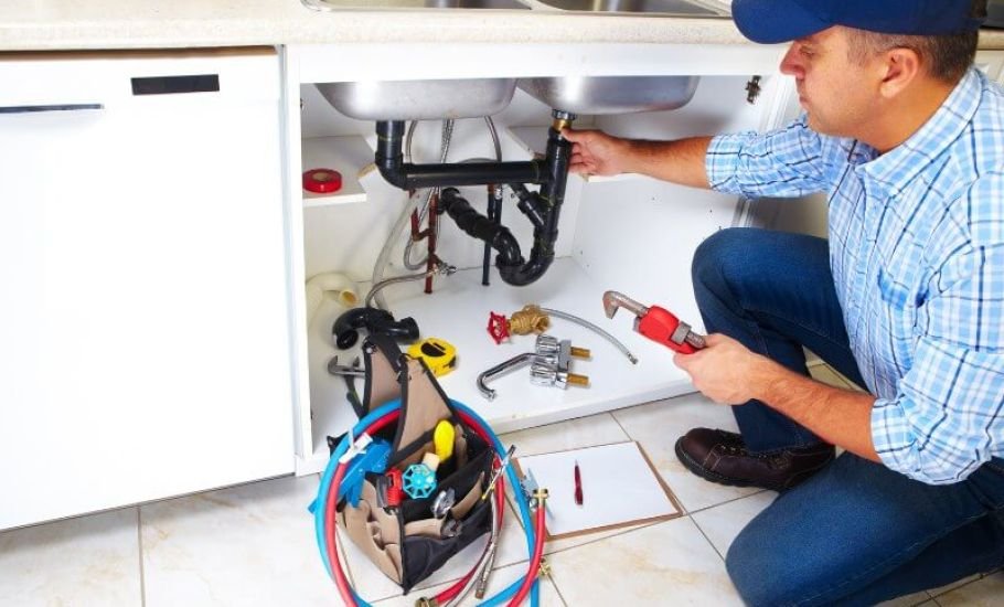 Best plumber in Bedford repairing leaking kitchen sink pipe